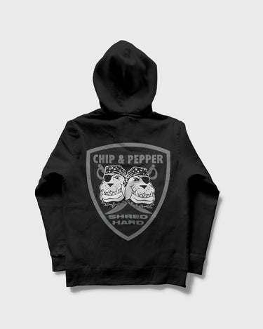 The Shred Hard Tee is built for ride-or-die shredders, featuring a bold graphic and the iconic bulldog crest that reps the Chip & Pepper legacy.